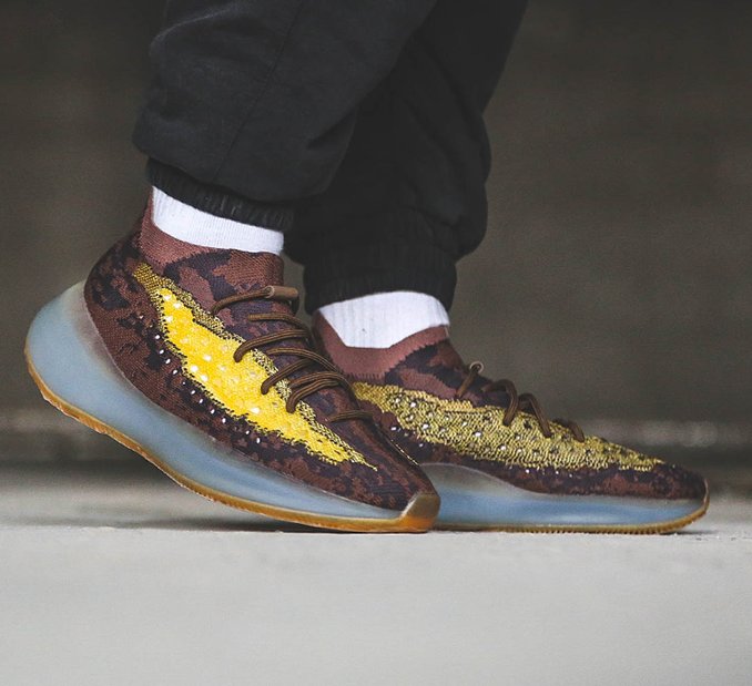 The Yeezy Boost 380 delivers a bold look with limitless comfort. A mix of earthy tones with vibrant yellow detailing creates a design that won't go unnoticed.